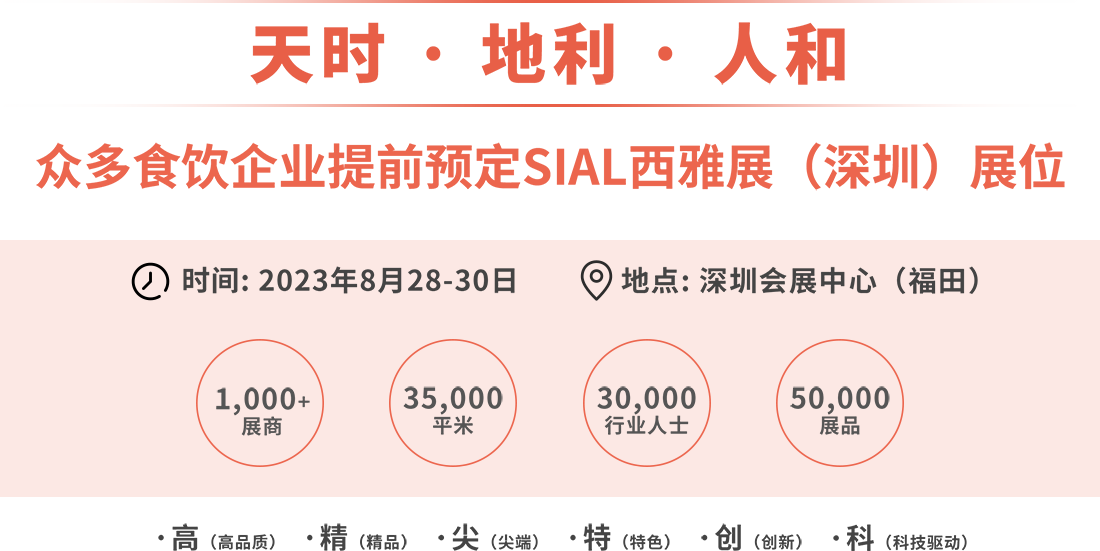第三、四季度節假日密集,是傳統的消費“旺季”,包括中秋節、國慶節、雙十一、雙十二、圣誕節、元旦、以及春節等眾多節假日,將開啟下半年“假日經濟”消費高峰,這也是食飲行業沖刺全年銷售業績的關鍵期。SIAL西雅展(深圳)的舉辦,為食飲行業提供了備戰下半年銷售高峰、挖掘新品的最佳時機。 |