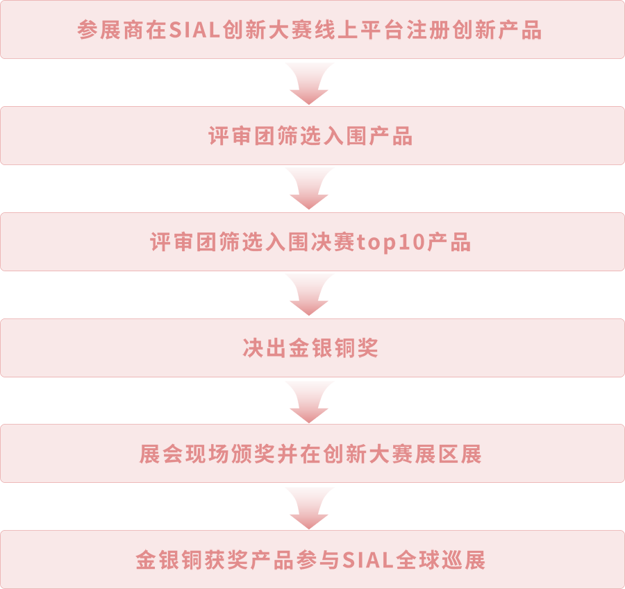| · 2023 SIAL 西雅國際食品展(上海)所有參展商(獨立展商及展團)均可免費參與SIAL 創新大賽,可提交一個或多個參展產品。 · 參賽產品需是2022年9月以后研發或發布的新產品。 | ||||||||||||||||||||||||||||||||||||||||