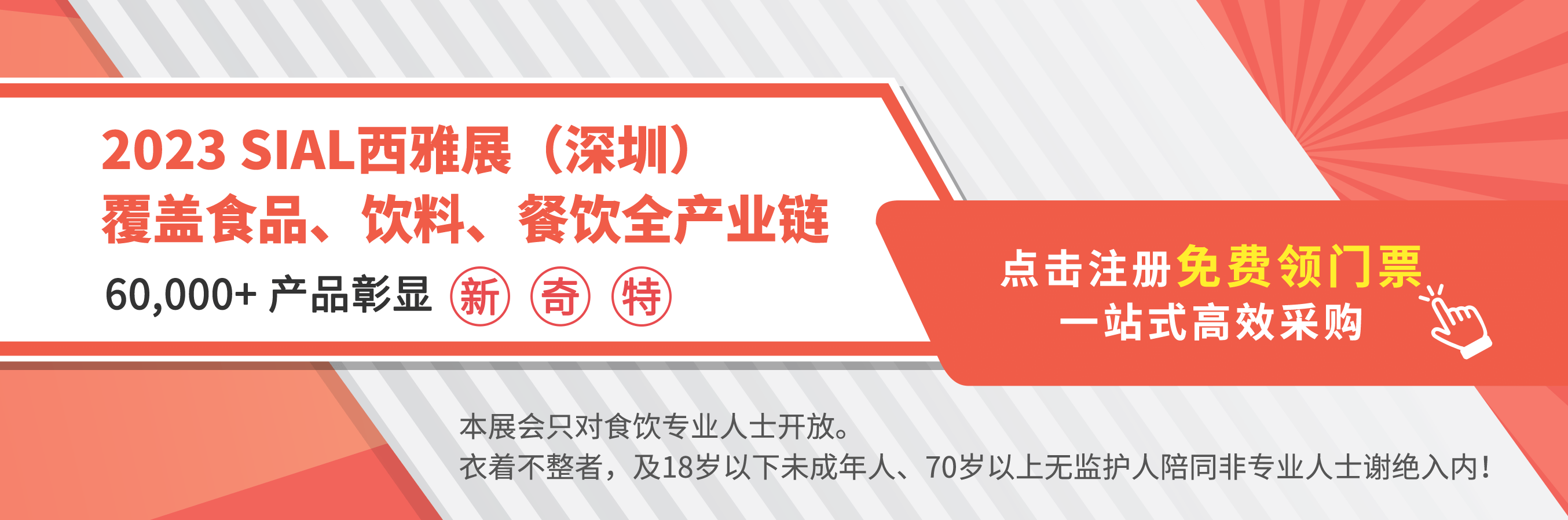 萬眾矚目的SIAL西雅國際食品展(深圳)將于2023年8月28-30日在深圳會展中心(福田)拉開帷幕!匯聚行業(yè)翹楚,引領(lǐng)前沿信息的第五屆SIAL世界食品產(chǎn)業(yè)峰會也將于展會同期權(quán)威舉辦。為助力食飲企業(yè)獲得更多高價值的合作商機和行業(yè)信息,即日起,峰會所涵蓋的5大主題論壇門票可免費領(lǐng)取!