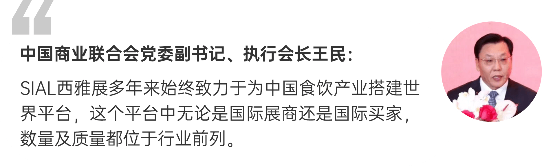 | 北京愛博西雅展覽有限公司董事總經理、中國會展經濟研究會副會長:我們非常希望通過SIAL西雅展的努力,能夠帶給展商、買家非常好的生意,給國內外市場帶來非常好的產品,為所有的食飲企業朋友們帶來更廣闊的突破和成長空間。 | ||