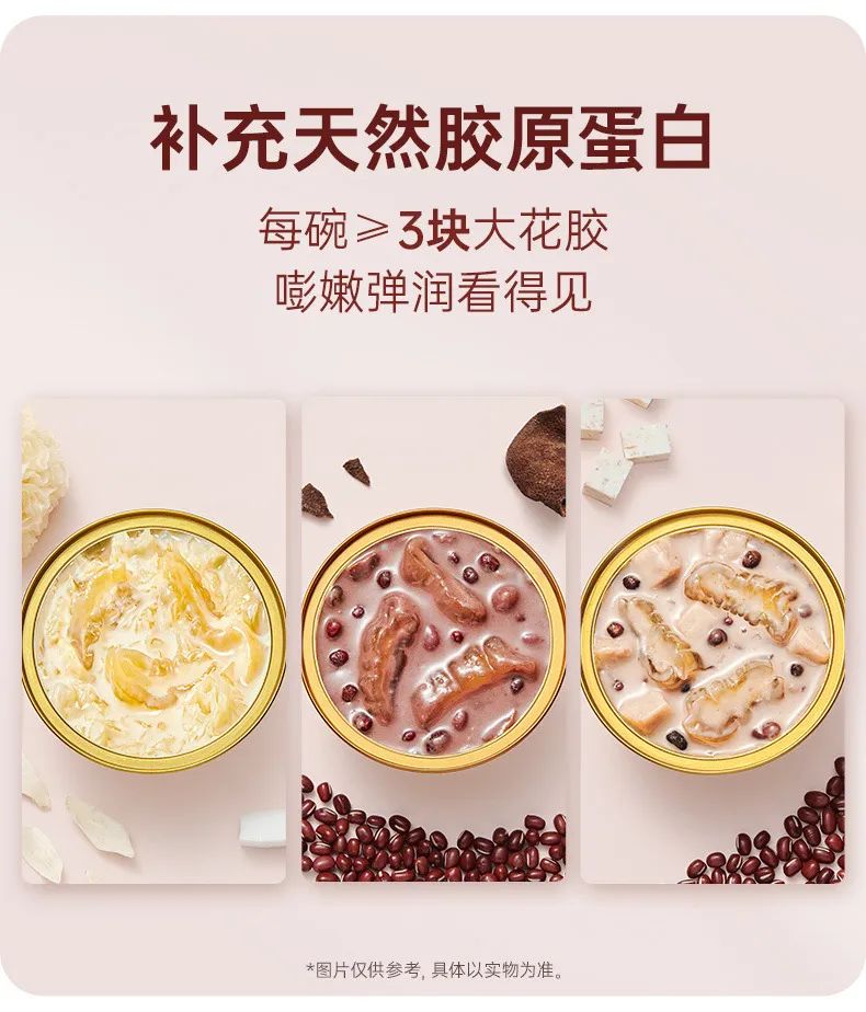 “椰香銀耳口味”清潤滑嫩,濃香椰奶+大塊花膠+大塊天然草本銀耳,瑩潤解燥,細膩滑爽;