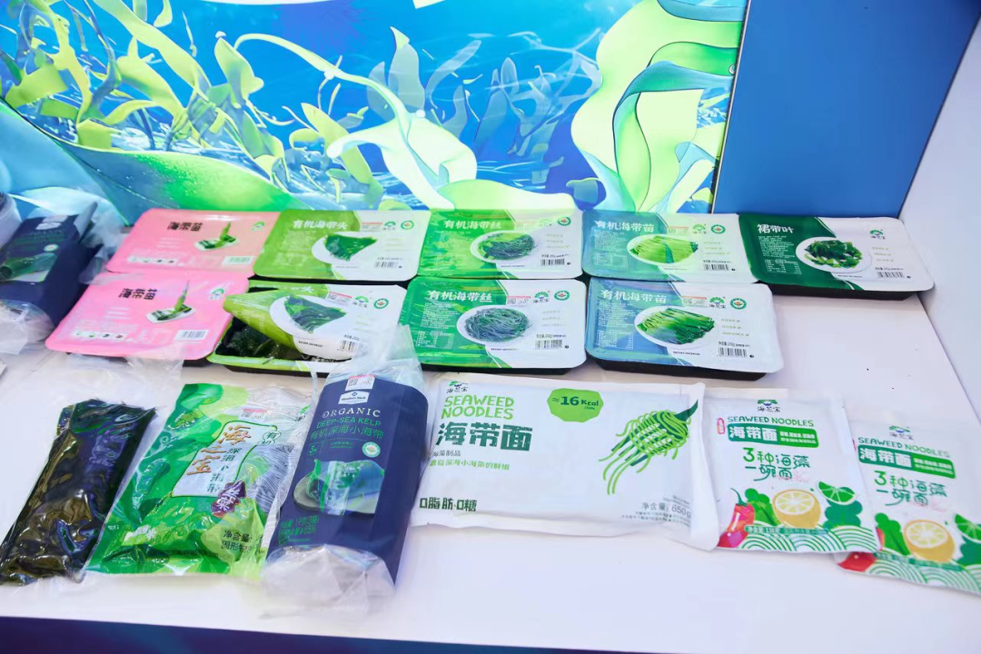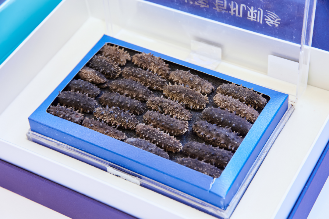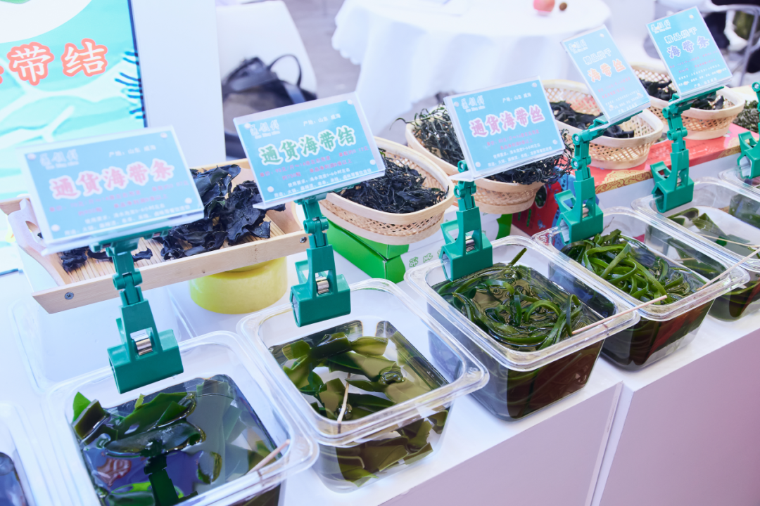 近年來(lái),威海市高度重視威海海鮮品牌建設(shè),不僅成功取得12個(gè)地理標(biāo)志水產(chǎn)品、27個(gè)地理標(biāo)志證明商標(biāo),還著力打造“走遍四海 鮮在威海”城市新名片。此次上海站活動(dòng)便以該城市新名片為主題,在博覽中心E4館G083展位上搭建了以“海洋藍(lán)、浪花白”為基礎(chǔ)色調(diào)的“威海海鮮都市巡展”水產(chǎn)展示區(qū)。展臺(tái)正面,LED屏循環(huán)播放的威海漁業(yè)品牌宣傳片內(nèi)容豐富,讓人印象深刻;展臺(tái)側(cè)面,小魚形象的“威海海鮮”LOGO和“走遍四海 鮮在威海”口號(hào)十分打眼,讓人過(guò)目不忘;展示區(qū)里,“海之寶”榮成海帶、“旺和”椒鹽皮皮蝦、“金鵬”麻辣花螺、“宇王”鹽烤鯖魚塊、“藻領(lǐng)鮮”速食海藻湯、“泰祥”鲅魚水餃、“好當(dāng)家”威海有機(jī)刺參、“燈塔水母”刺身級(jí)生蠔等近百款冰鮮及冷凍水產(chǎn)品、海鮮預(yù)制食品、即食海鮮休閑食品、調(diào)理水產(chǎn)食品、高附加值精深加工產(chǎn)品秀色可餐,吸引并受到各地采購(gòu)商的廣泛關(guān)注和青睞。