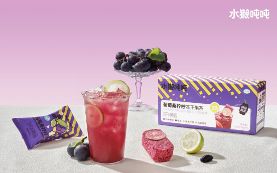 7月19日,水獺噸噸推出凍干鮮檸茶系列新品口味——葡萄桑檸檸。是繼今夏推出檸檸檸檸、鴨屎香檸檸、楊梅檸檸后的“夏日限定”鮮果檸檬茶。
