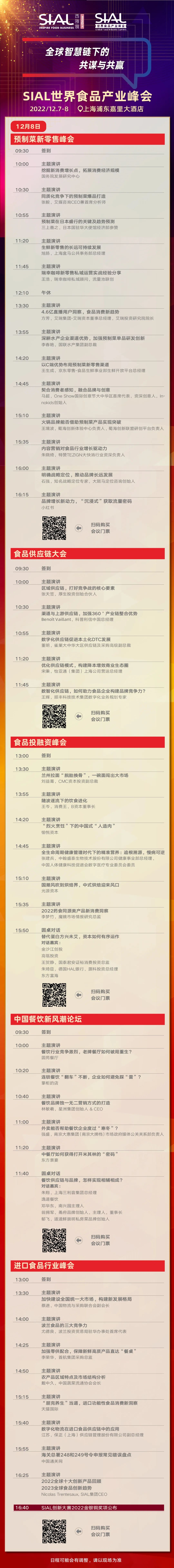 SIAL世界食品產(chǎn)業(yè)峰會將于2022年12月7日-8日如期舉辦!峰會將以“全球智慧鏈下的共謀與共贏”為主題舉辦包含預制菜、新零售、供應鏈、農(nóng)業(yè)食品科技、食品投融資、營養(yǎng)健康食品、植物性食品、乳業(yè)、肉類、飲品、中餐、進口食品在內(nèi)的多場主題論壇。