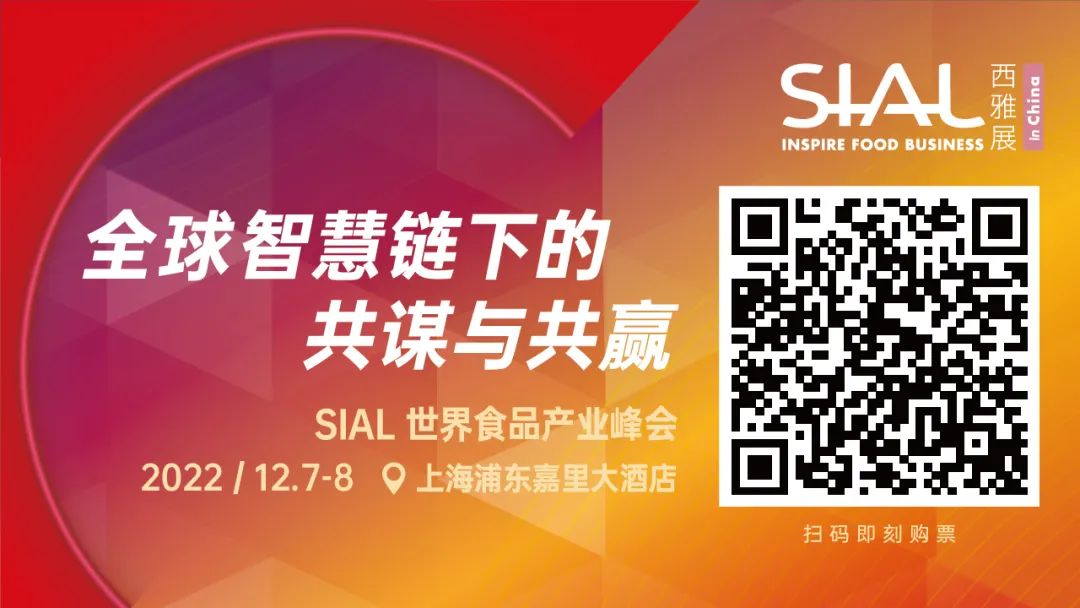 SIAL世界食品產業峰會將于2022年12月7日-8日如期舉辦!峰會將以“全球智慧鏈下的共謀與共贏”為主題舉辦包含預制菜、新零售、供應鏈、農業食品科技、食品投融資、營養健康食品、植物性食品、乳業、肉類、飲品、中餐、進口食品在內的多場主題論壇。