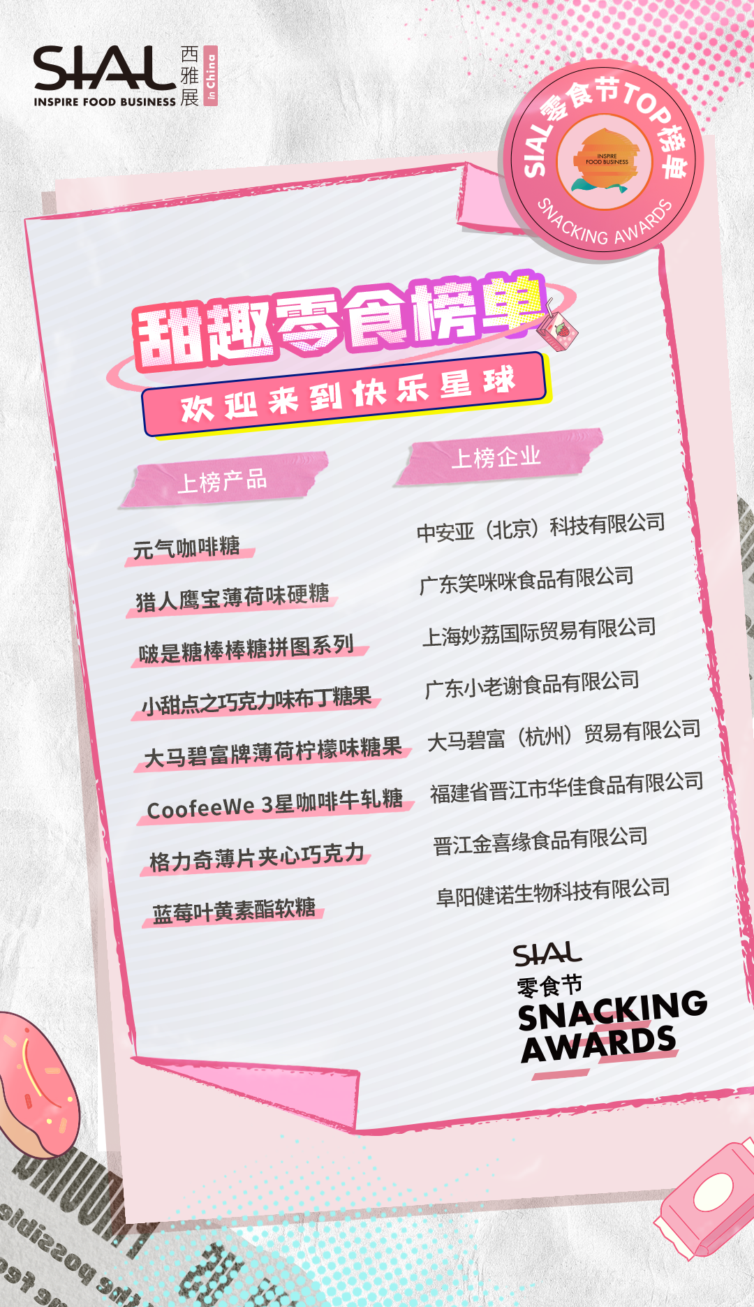 5月18日-20日SIAL零食節首次亮相SIAL西雅國際食品展(上海),四大主題快閃場景嗨翻全場,SIAL零食節TOP榜單重磅揭曉。