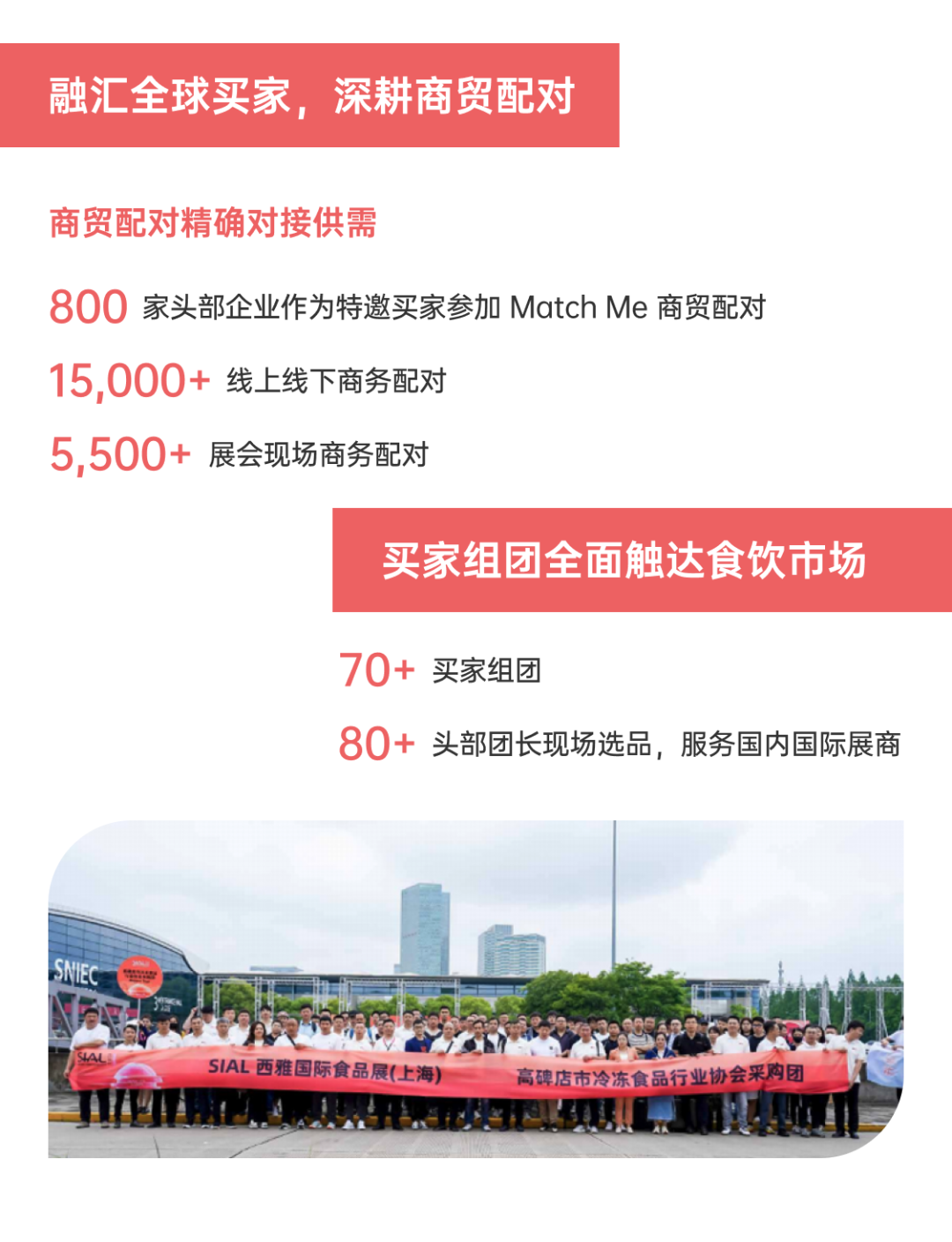 值得一提的是,今年5000+專業(yè)國(guó)際買(mǎi)家團(tuán)的到來(lái)進(jìn)一步增強(qiáng)了展會(huì)的商貿(mào)性和國(guó)際性,這些買(mǎi)家團(tuán)通常由大型零售商、分銷(xiāo)商、進(jìn)口商、餐飲業(yè)采購(gòu)決策者等組成。
