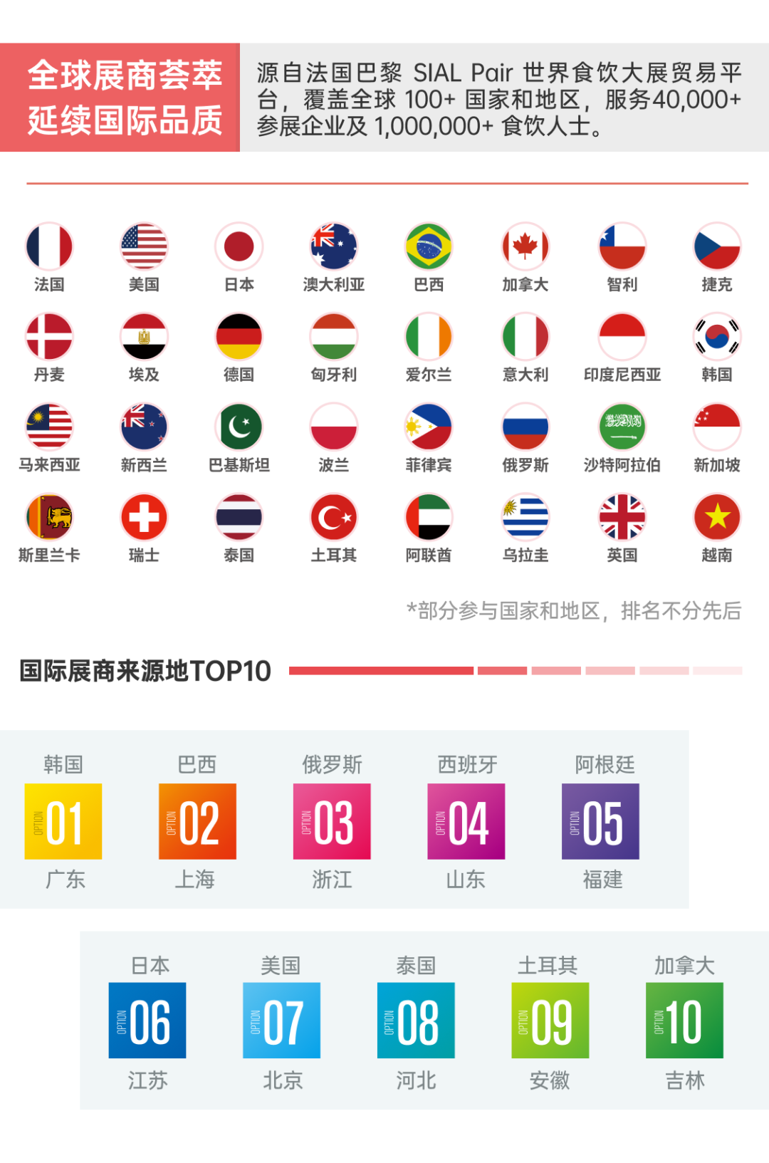 在中法建交60周年與SIAL品牌60周年的雙重慶典之際,作為全球矚目的世界食飲大展,SIAL 西雅展(上海)將為世界各國(guó)的優(yōu)質(zhì)食飲產(chǎn)品“走進(jìn)中國(guó)”,搭起專業(yè)、堅(jiān)實(shí)、高效的國(guó)際食飲交流貿(mào)易橋梁,同時(shí)向世界傳遞中國(guó)食飲行業(yè)的發(fā)展成就,為世界食飲產(chǎn)業(yè)的思想交流與商貿(mào)往來(lái),提效賦能。
