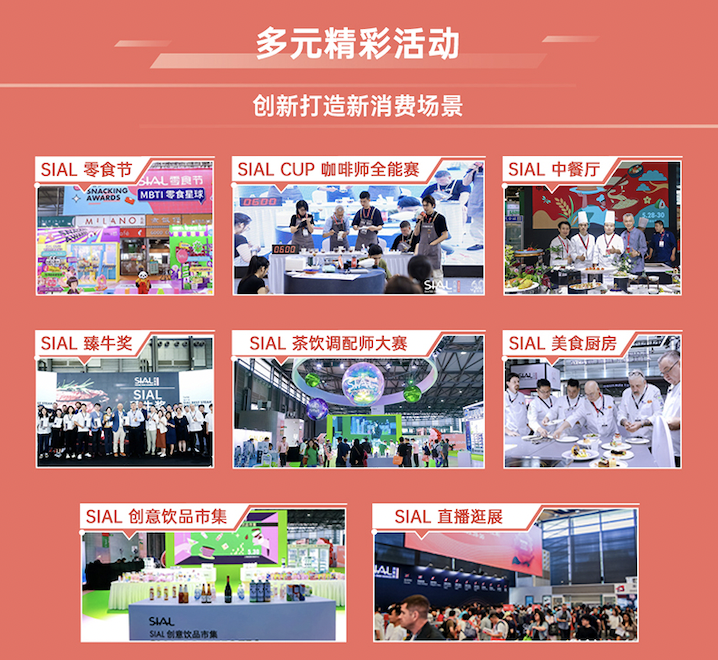 SIAL 西雅展始終以驅動食飲行業的創新與高質量發展為己任。在“Inspire Food Business”這一價值主張下,SIAL 西雅展還打造了SIAL INNOVATION創新大賽、SIAL世界食品產業峰會、SIAL in China Awards西雅國際金獎等均具有行業引領意義的活動和峰會品牌。這些活動和峰會,也將為參加SIAL 西雅展的展商和專業人士帶來行業創新發展的前沿動態和趨勢觀察。
