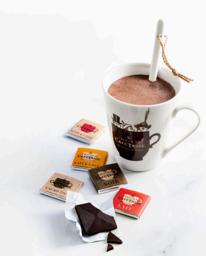 作為咖啡打造的巧克力品牌,Café-tasse加菲特使的商標(biāo)圖案就是一杯熱氣騰騰的咖啡。